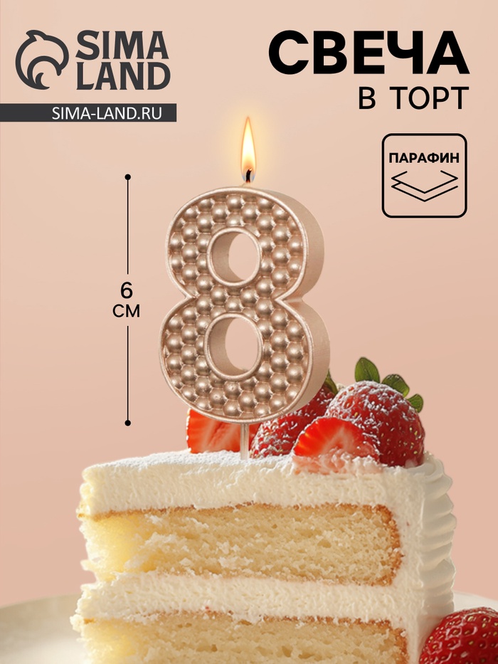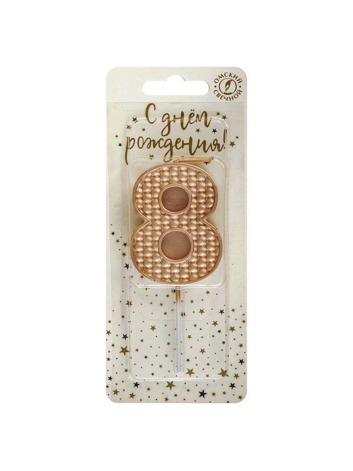 Свеча в торт на шпажке «Жемчужная», цифра 8, шампань