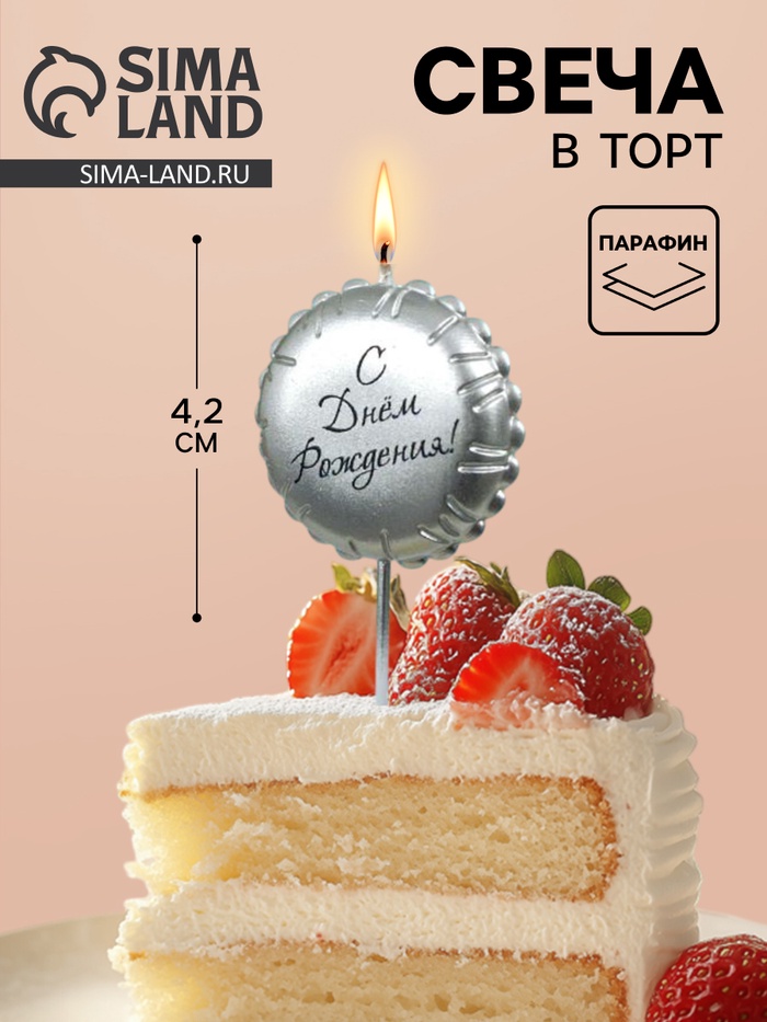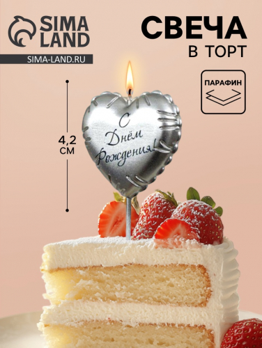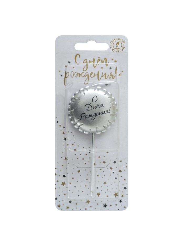 Свеча в торт «С днем рождения», серебряная