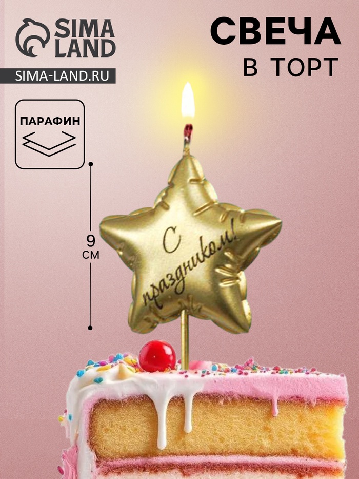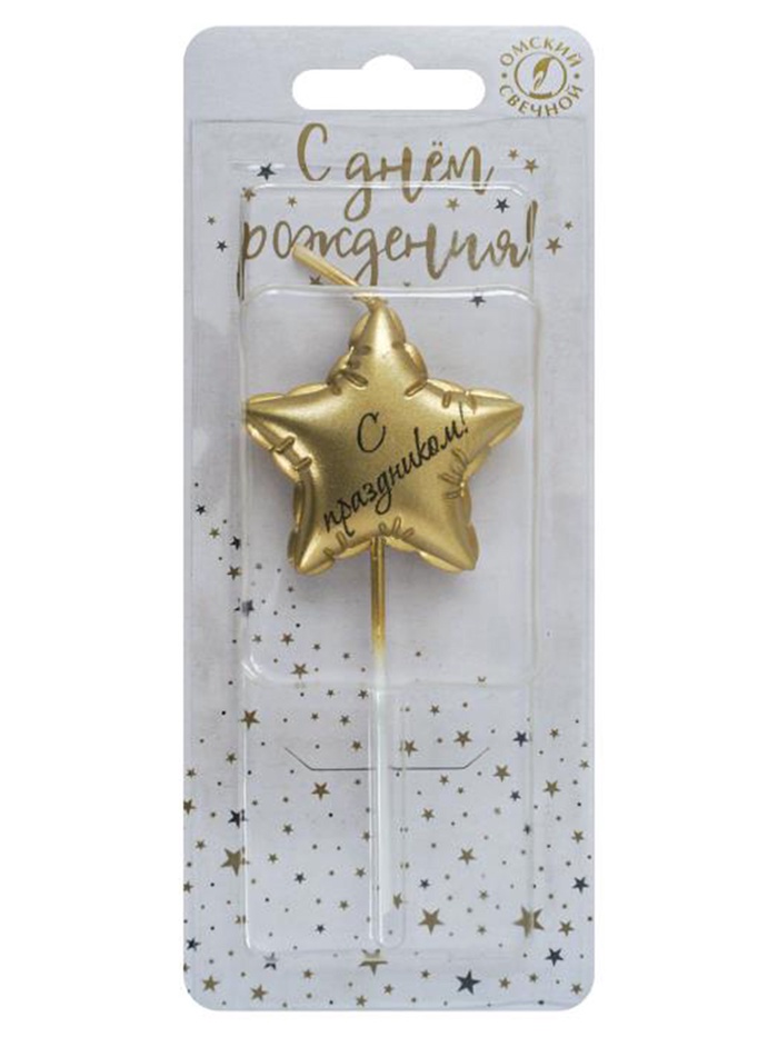 Свеча в торт «С праздником», золотая