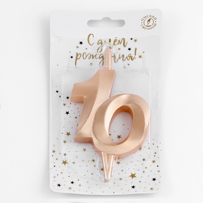 Свеча в торт «Юбилейная», цифра 10, 10 см, шампань