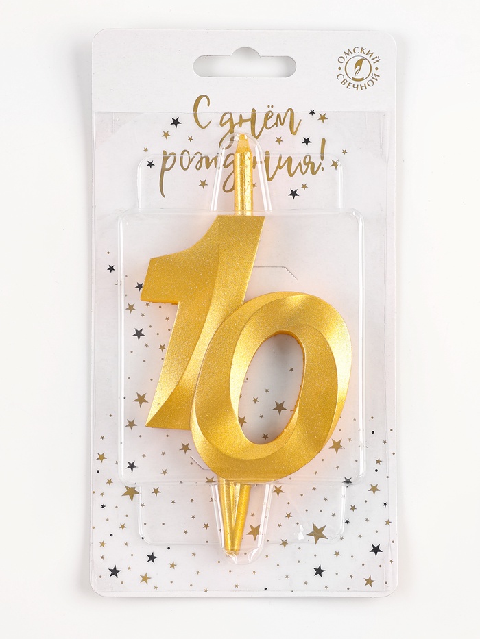 Свеча в торт «Юбилейная», цифра 10, золотая