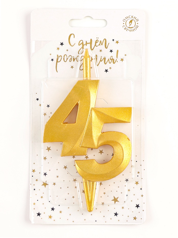 Свеча в торт «Юбилейная», цифра 45, золотая