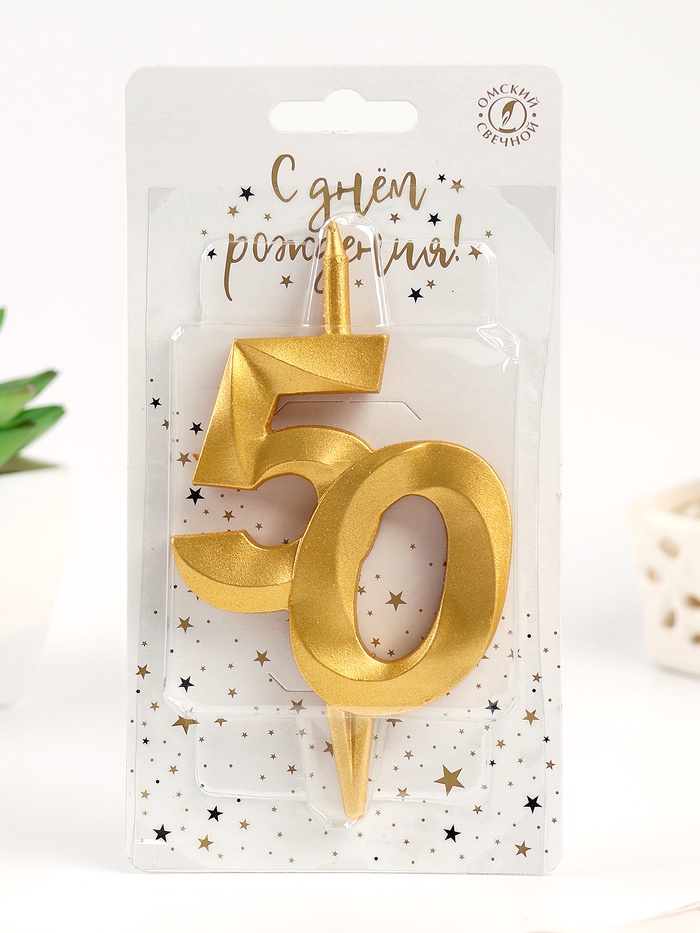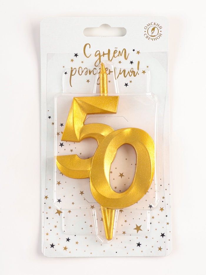 Свеча в торт «Юбилейная», цифра 50, золотая