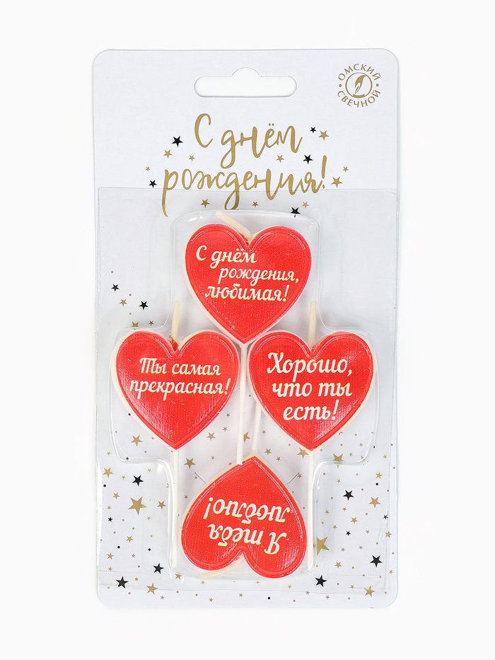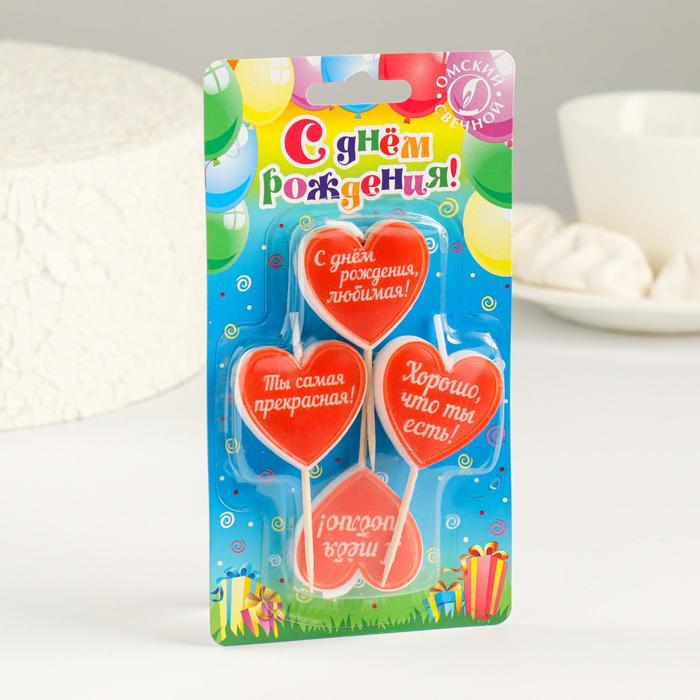 Свечи для торта на шпажках «Сердечки с надписью», 2.6 см, 25 г, 4 шт.