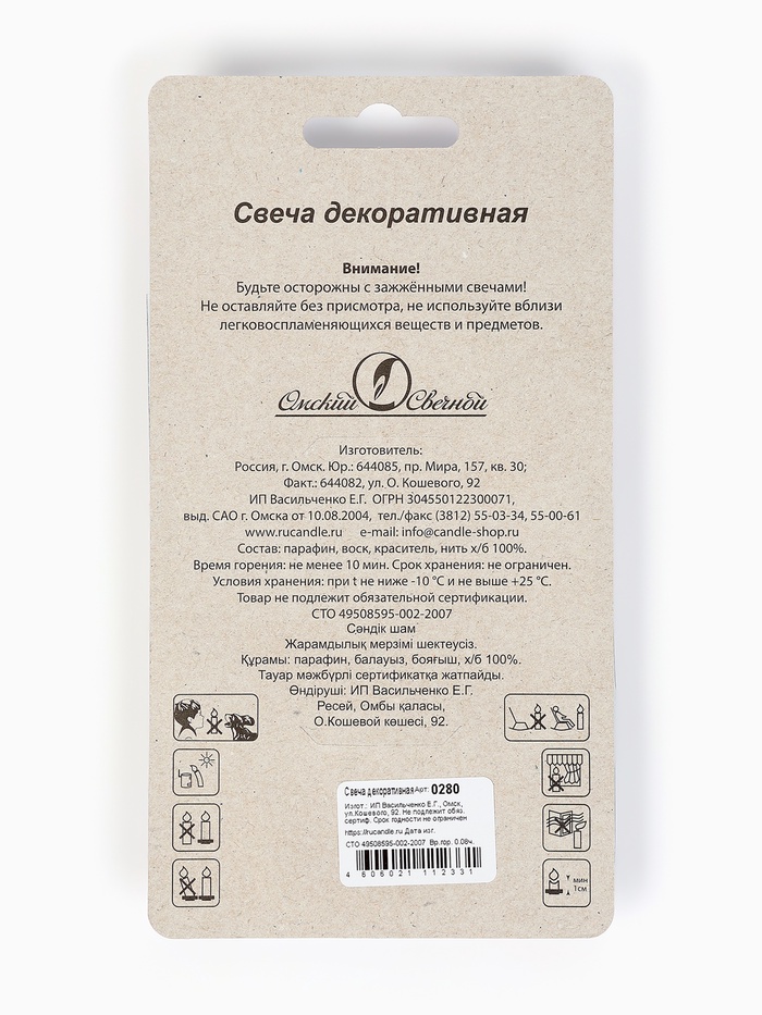 При транспортировке в зимнее (холодное) время года коробки со свечами вскрывать после того, как они постоят на Вашем теплом складе не менее суток.