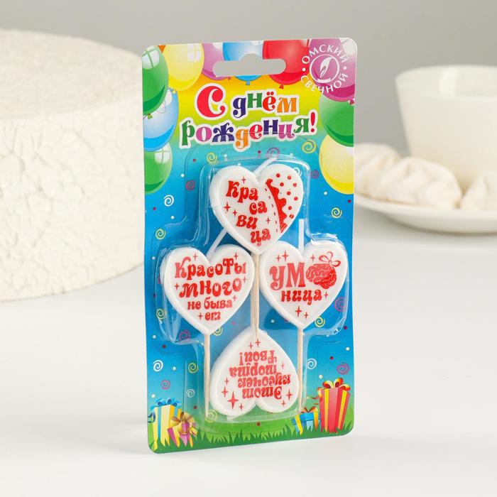 Свечи в торт на шпажках «Сердечки для красотки», 2.6 см, 25 г, набор 4 шт.