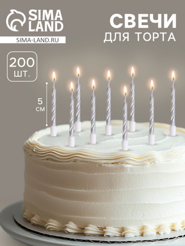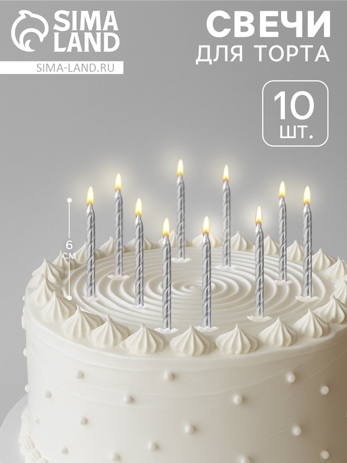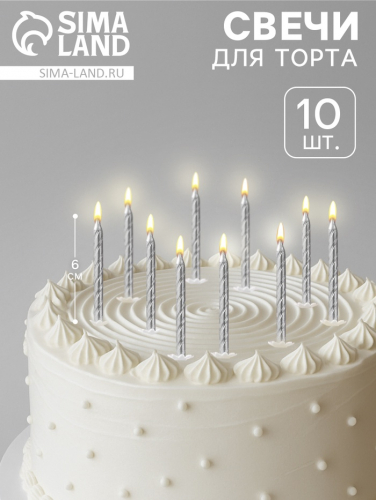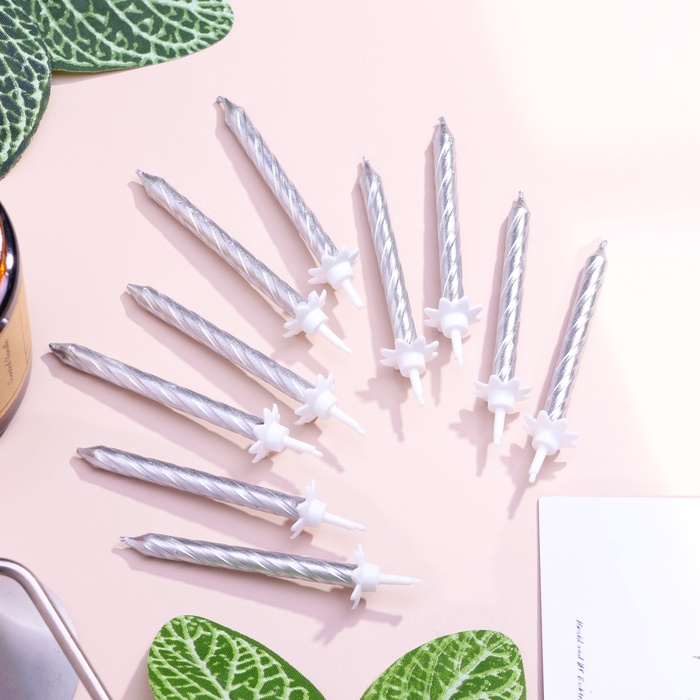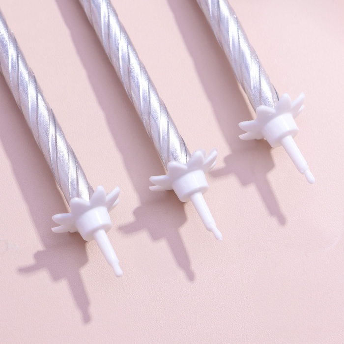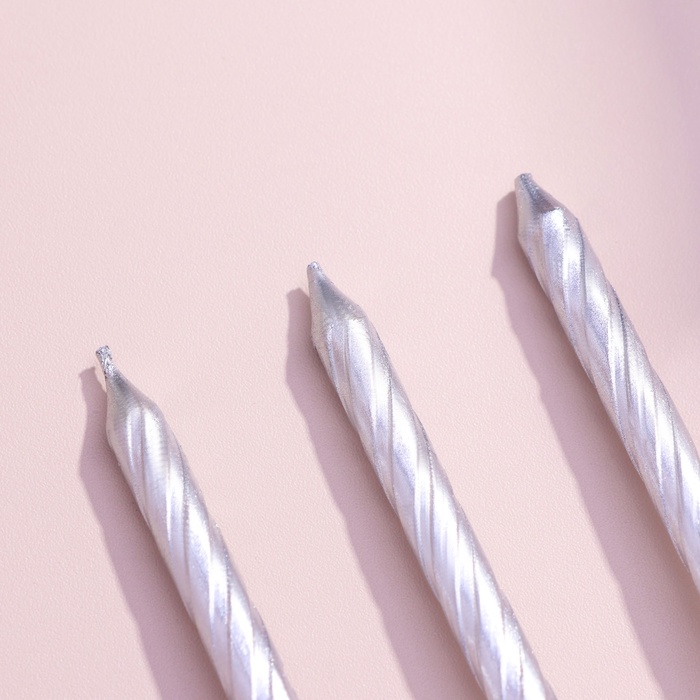 Свечи в торт «Спираль», 6 см, серебряные, набор 10 штук