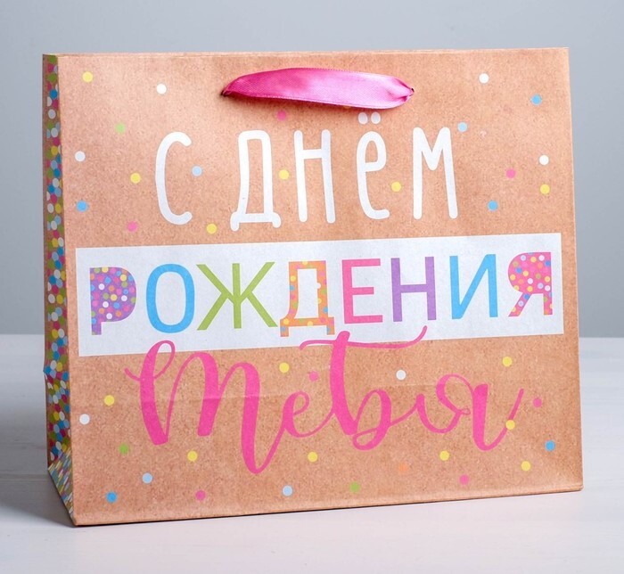 Пакет крафтовый вертикальный «С Днём Рождения!», L 31 × 40 × 9 см