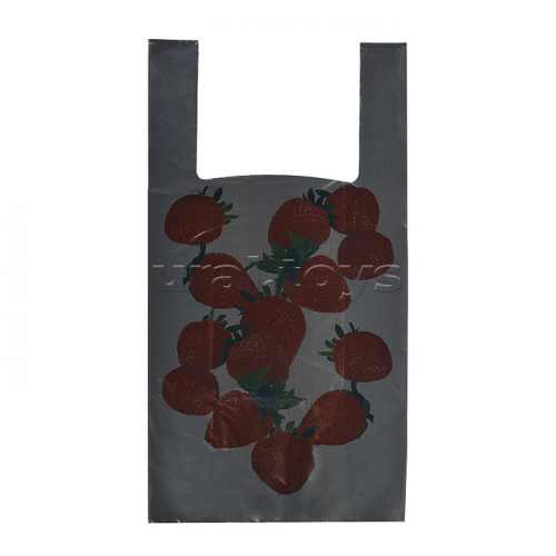 Пакет ПЭ типа "майка" 28+14х55см (37) ПВД (Клубника крупная)