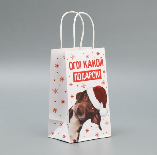Пакет подарочный крафтовый «Подарок», 12 × 21 × 9 см