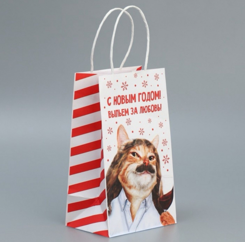 Пакет подарочный крафтовый «За любовь», 12 × 21 × 9 см