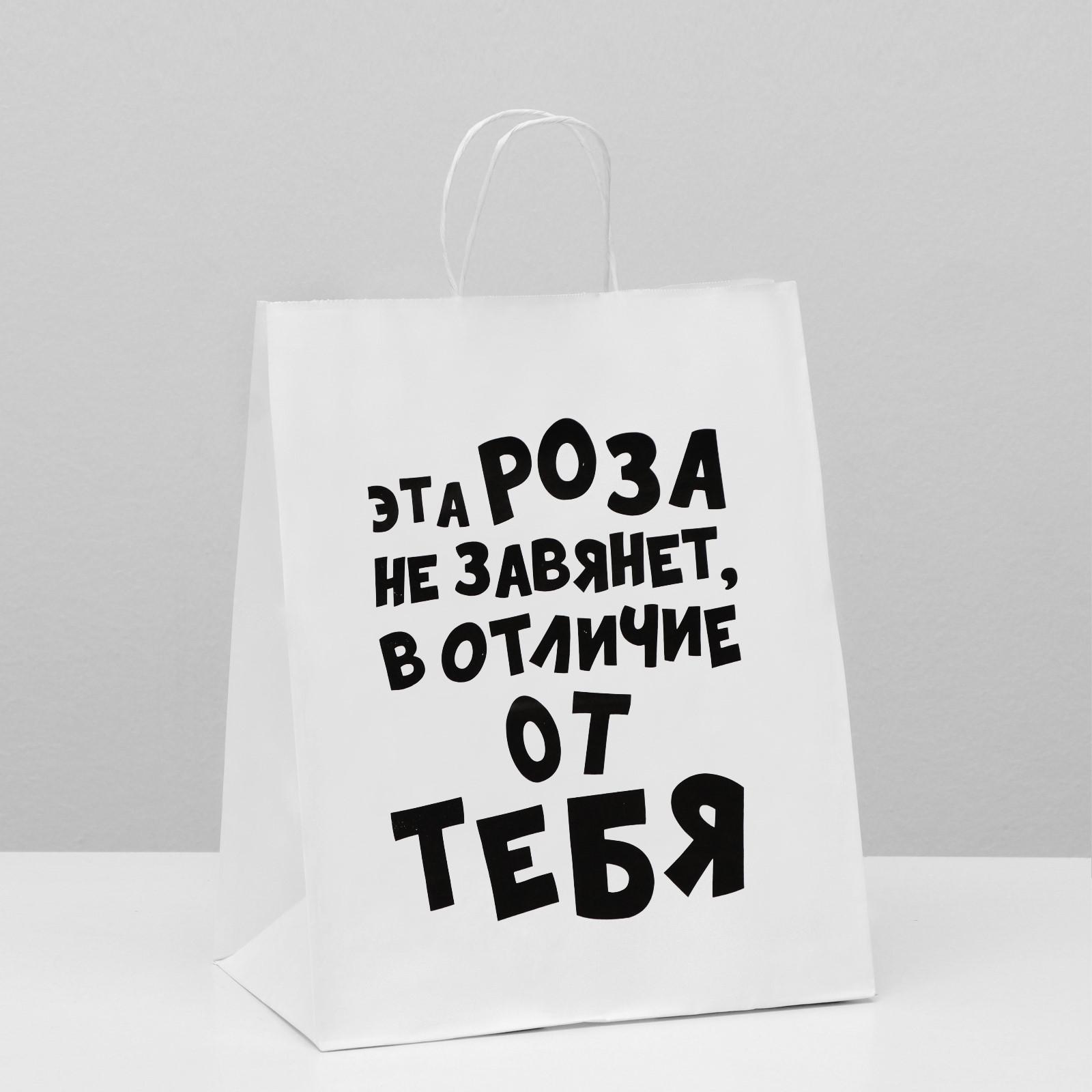 Пакет подарочный с приколами, крафт «Роза», белый, 24 х 14 х 30 см