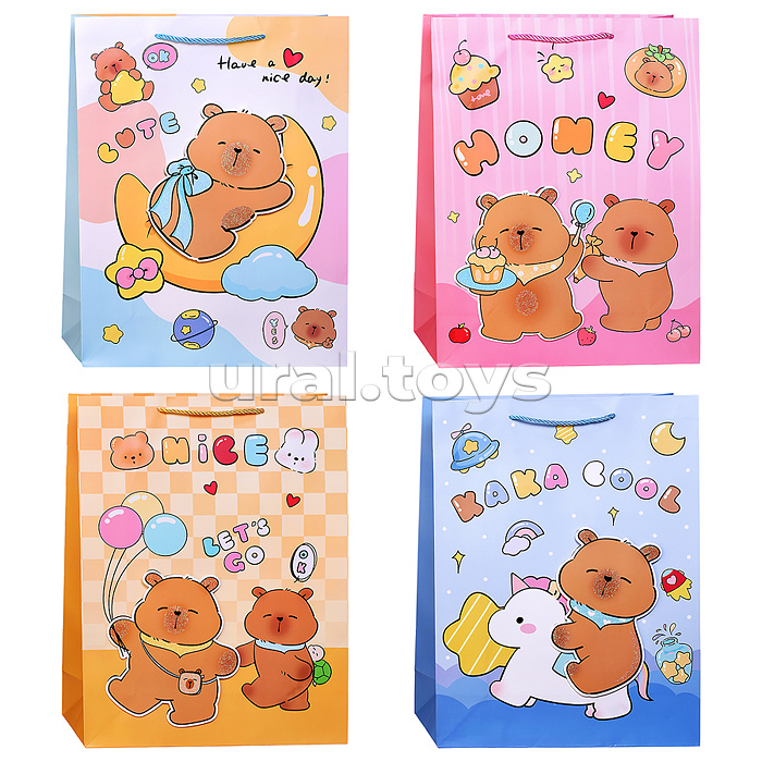 Пакет подарочный "Весёлые капибарки" 31*12*40см