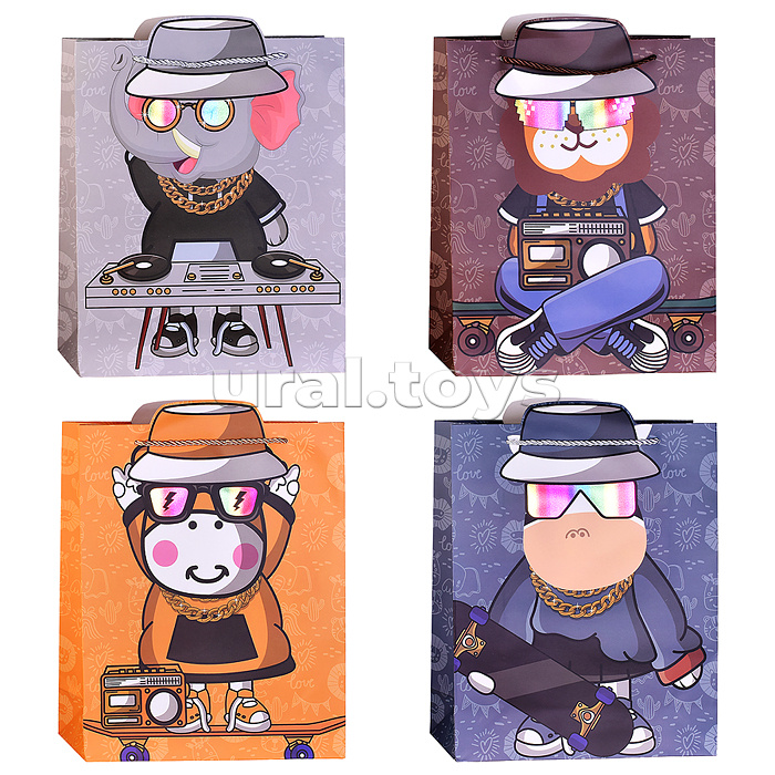 Пакет подарочный "Зверёк в очках" 26*32*10см