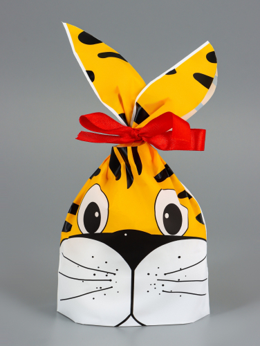 Пакет полиэтиленовый подарочный с ушками «Тигр», 13×23 см