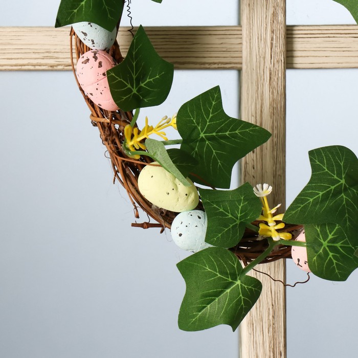 Пасхальный венок на дверь «Яички с листочками», настенный декор, d=18 см