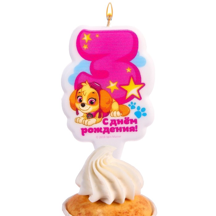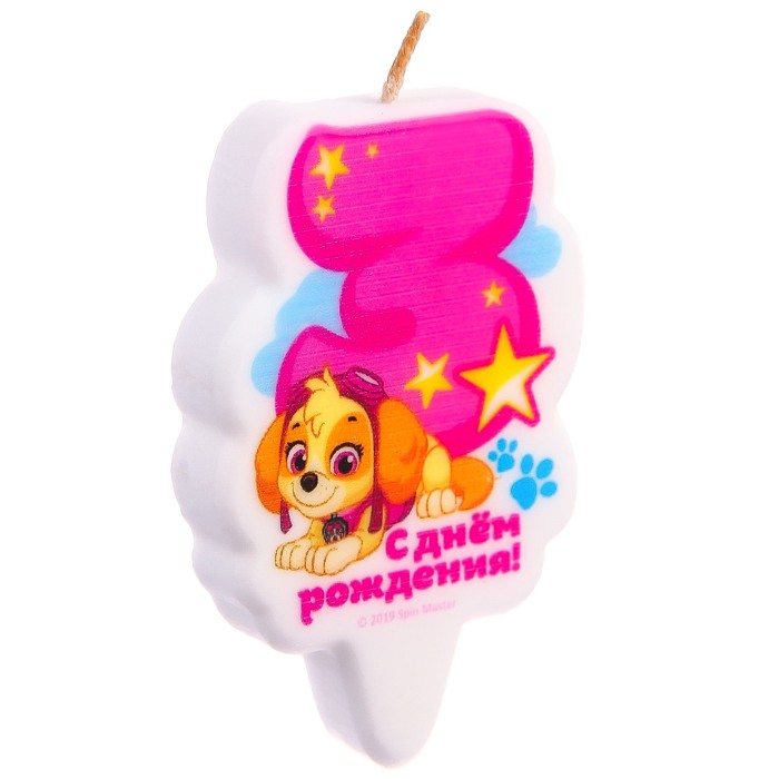 Свеча для торта «С Днем рождения», цифра 3, Щенячий патруль