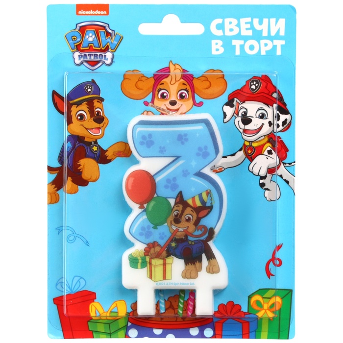 Свеча в торт «С Днем рождения», цифра 3, Щенячий патруль, 8.5×5 см