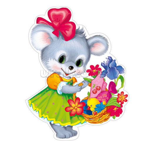 Плакат вырубной А4. Мышка с корзинкой цветов (УФ-лак)