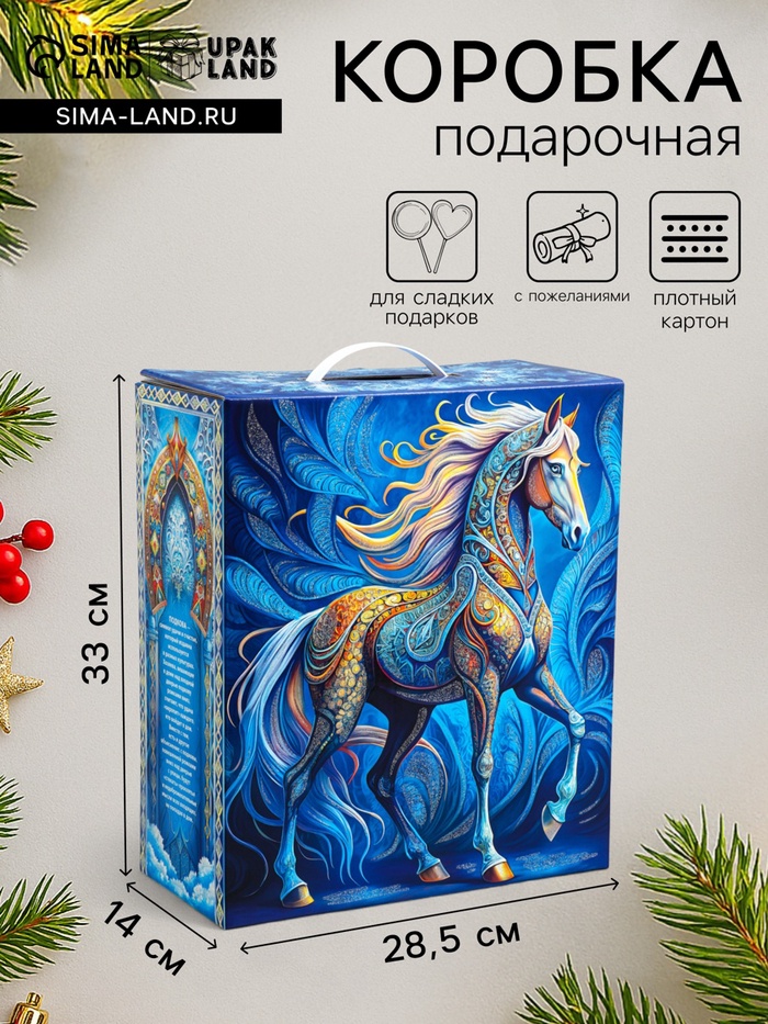 Готовое праздничное решение: Качественная печать сохраняет чёткость узоров, прочный материал защищает содержимое. Просто положите подарок внутрь — и презент готов к вручению. Такая коробка с символом года сделает ваш подарок особенно актуальным.