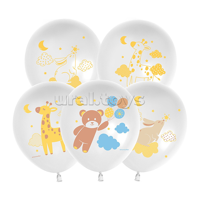 Шар (12''/30 см) Любимые зверята, Белый, пастель, 2 ст, 25 шт.