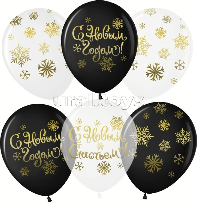 Шар (12''/30 см) С Новым Годом! золотые снежинки, ассорти, кристалл, 5 ст, 25 шт.