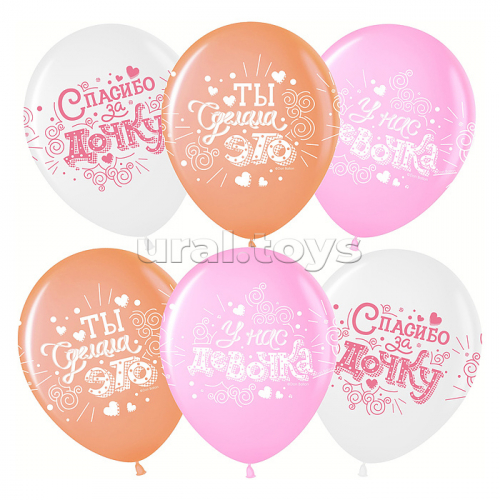 Шар (12''/30 см) Спасибо за дочку!, Ассорти, пастель, 4 ст, 25 шт.