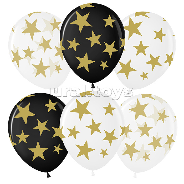 Шар (12''/30 см) Звезды Люкс, Ассорти, кристалл, 5 ст, 25 шт.