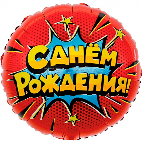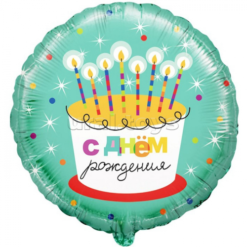 Шар (18''/46 см) Круг, С Днем Рождения! (торт со свечками), 1 шт. в уп.