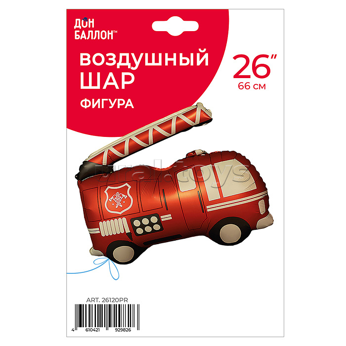 Шар (26''/66 см) Фигура, Пожарная машина, Красный, Сатин, 1 шт. в уп.