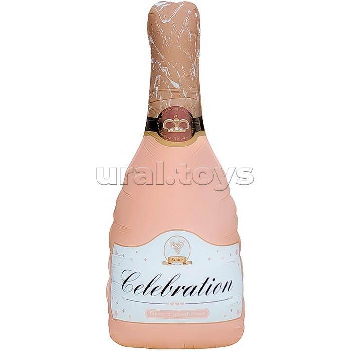Шар (39''/99 см) Фигура, Бутылка Шампанское, Розовый, Сатин, 1 шт. в уп.