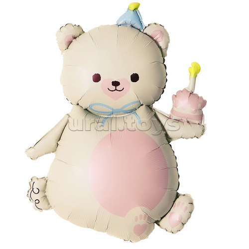 Шар (39''/99 см) Фигура, Мишка с кексиком, Кремовый, Сатин, 1 шт. в уп.