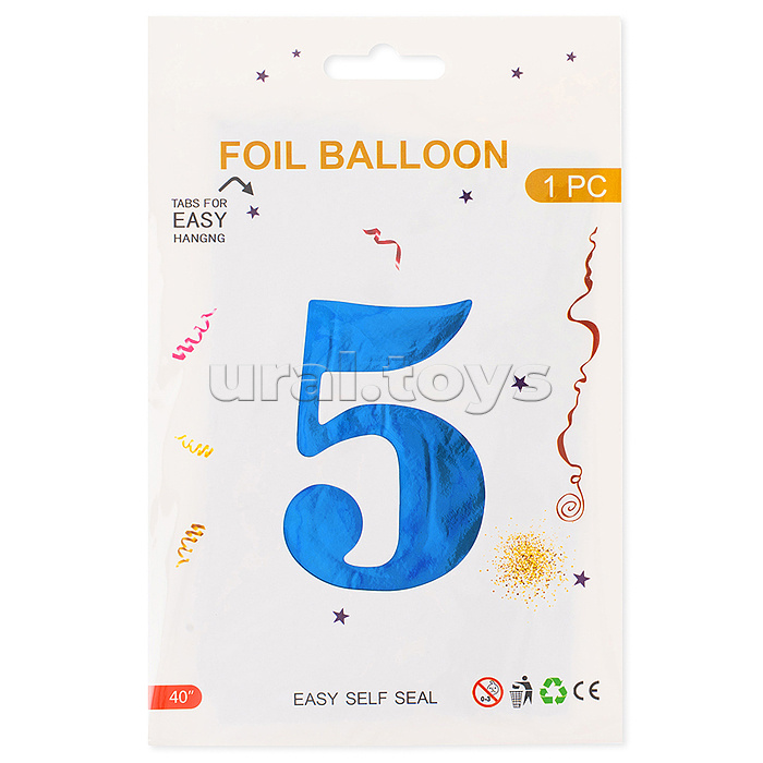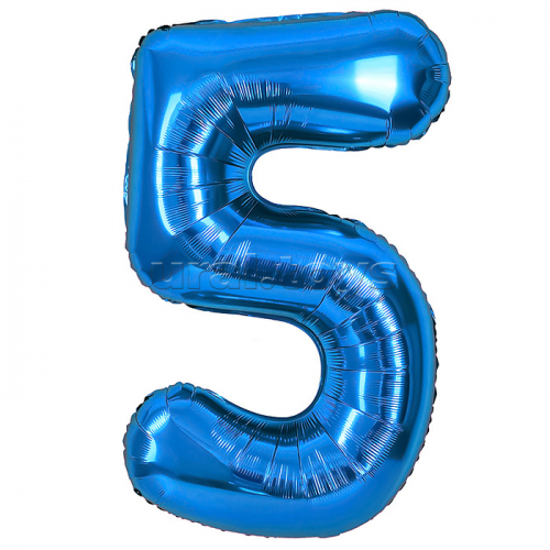 Шар (40''/102 см) Цифра, 5, Синий, Металлик, 1 шт. в уп.