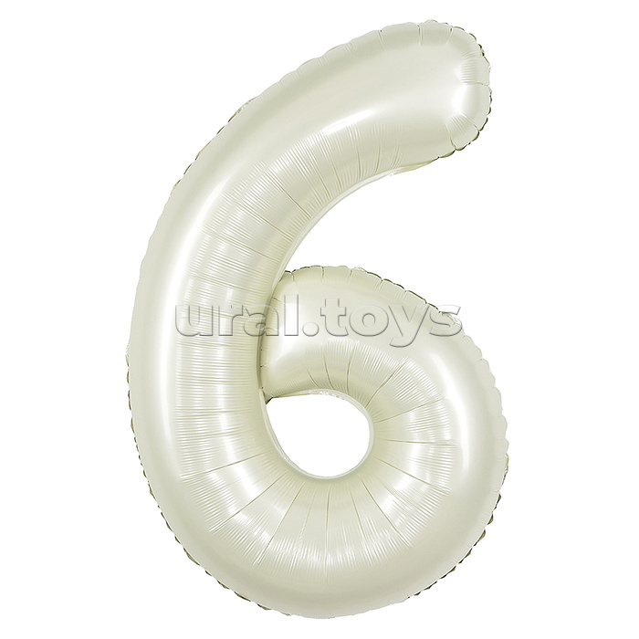 Шар (40''/102 см) Цифра, 6, Белый песок, Сатин, 1 шт. в уп.
