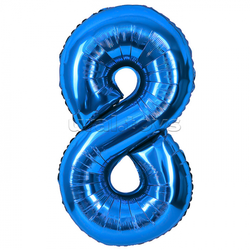 Шар (40''/102 см) Цифра, 8, Синий, Металлик, 1 шт. в уп.