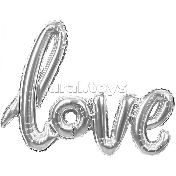 Шар (41''/104 см) Фигура, Надпись "Love", Серебро, 1 шт. в уп.
