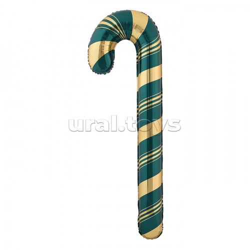 Шар (59''/150 см) Фигура, Леденец трость (надув воздухом), Зеленый/Золото, 1 шт. в уп.