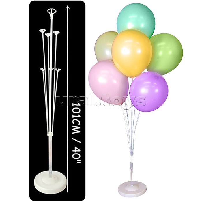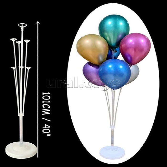 Стойка для шаров Фонтан, 7 насадок, 1 м, Белый/Прозрачный, 1 шт.