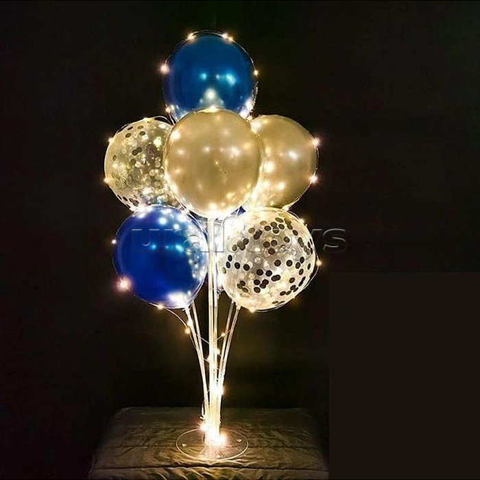 Стойка для шаров Фонтан, 7 насадок, с подсветкой, 0,7 м, Теплый белый, 1 шт.