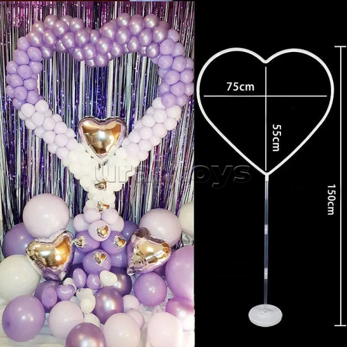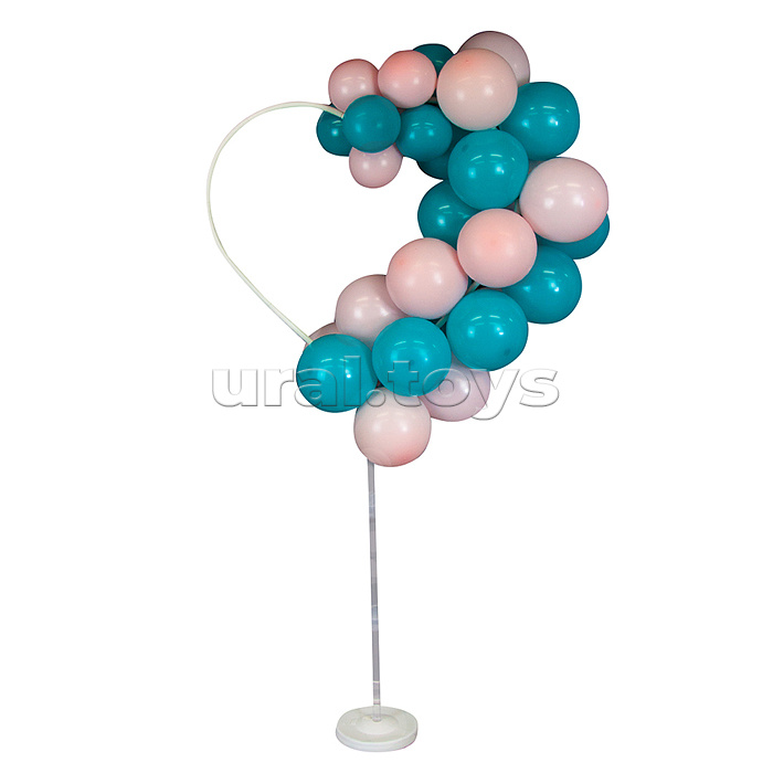 Стойка для шаров Сердце, на ножке, 0,7*1,5 м, Белый/Прозрачный, 1 шт.