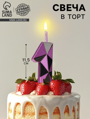 Свеча для торта «Алмаз», цифра 1, фиолетовый металлик
