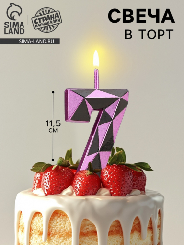 Свеча для торта «Алмаз», цифра 7, фиолетовый металлик
