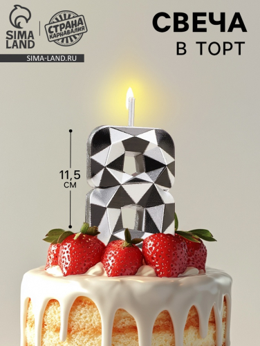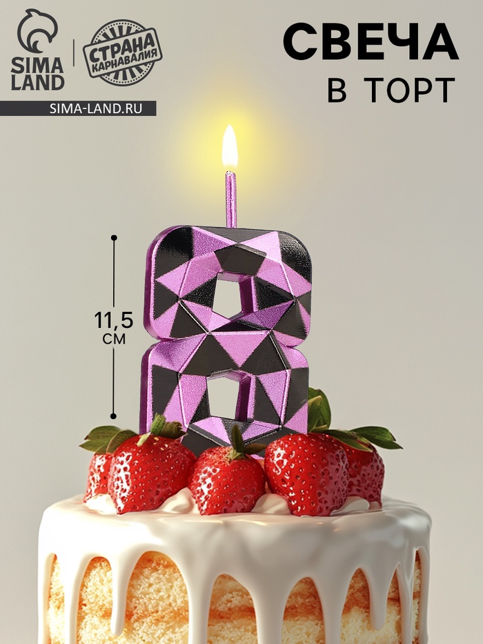 Свеча для торта «Алмаз», цифра 8, фиолетовый металлик