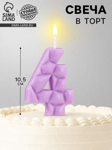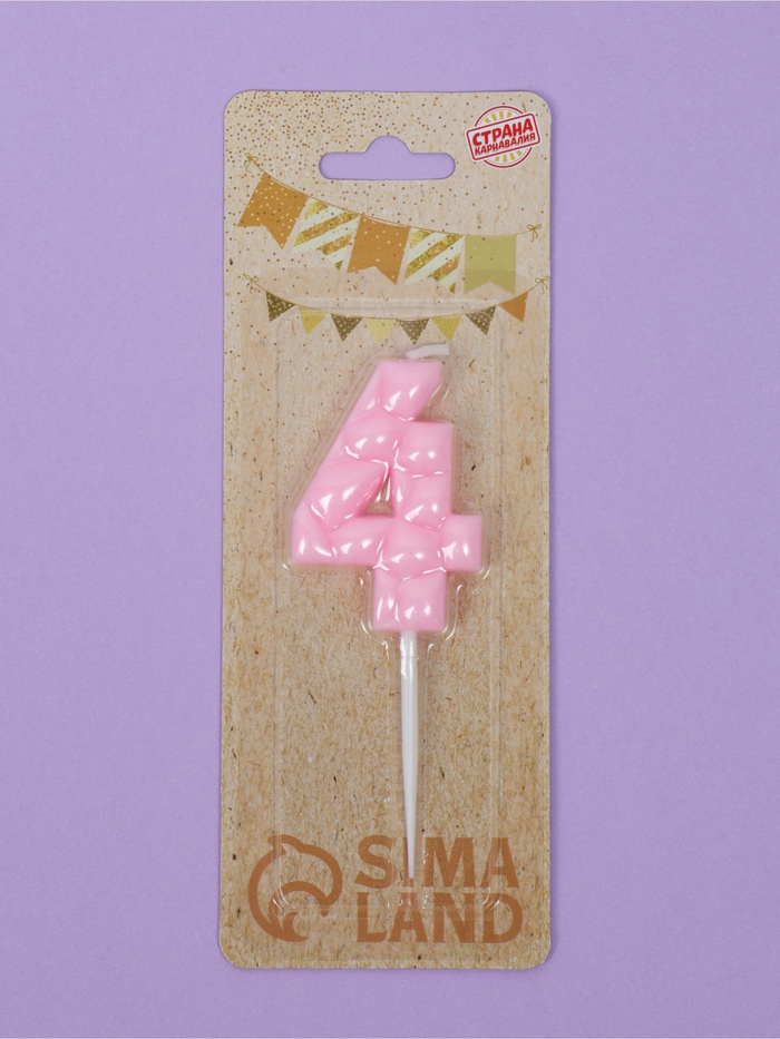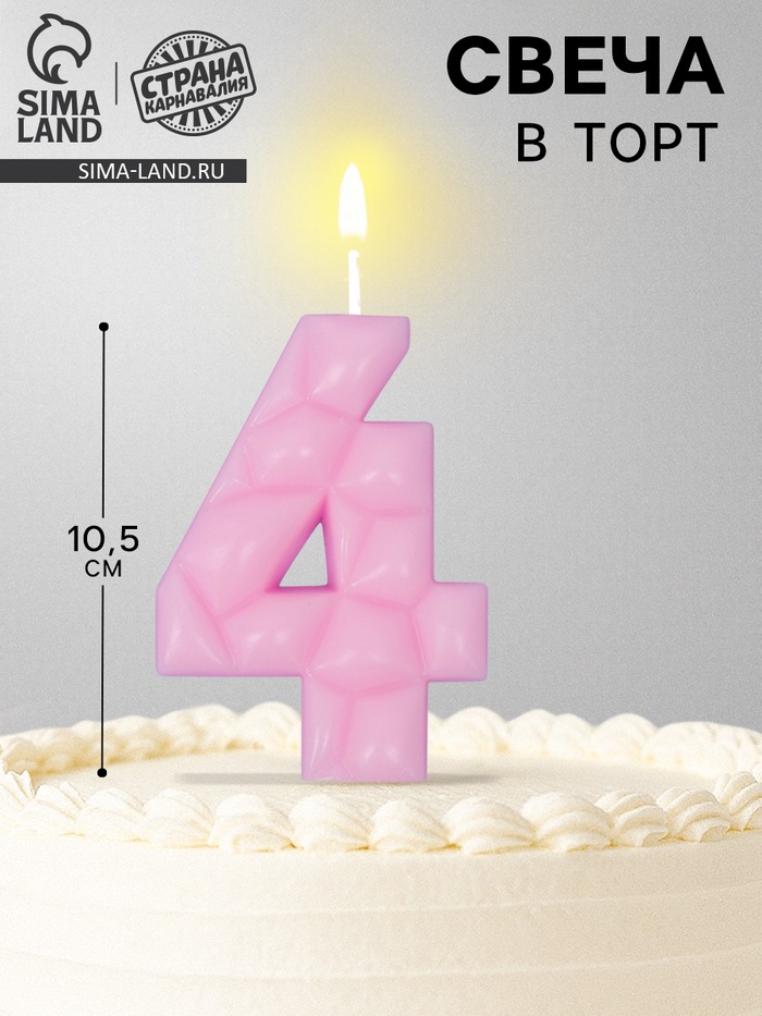 Свеча для торта «Цифра 4», светло-розовая
