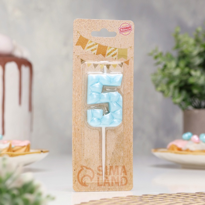 Свеча для торта «Цифра 5», голубая