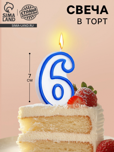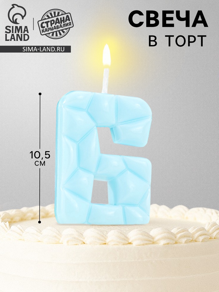 Свеча для торта «Цифра 6», голубая