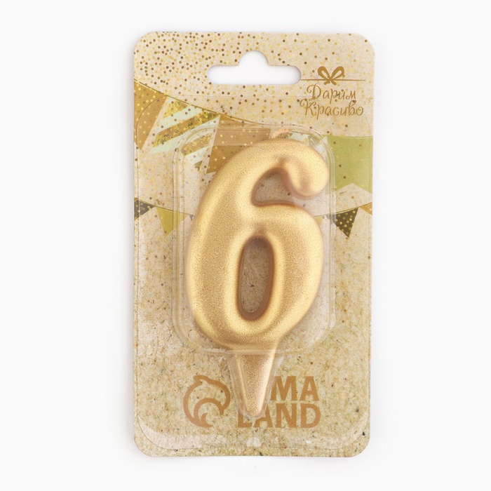 Свеча для торта «Цифра 6», золотая, 5.5 см