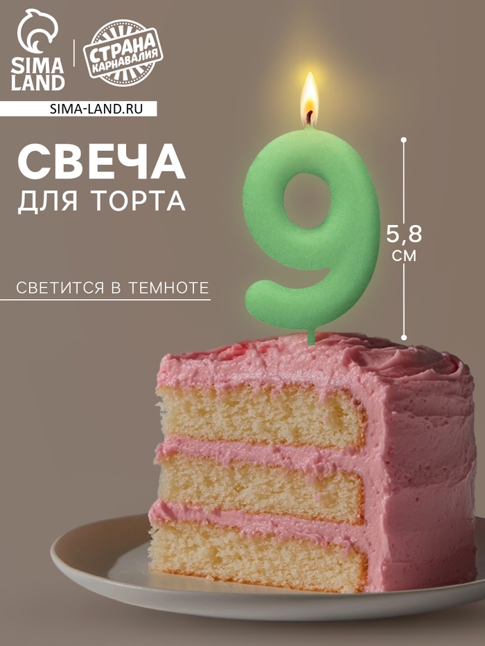 Свеча для торта, цифра «9», светится в темноте, 3.8×8 см