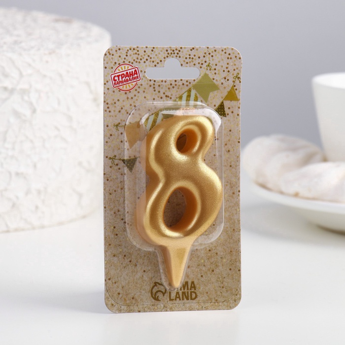 Свеча для торта цифра «Овал» золотая 8, большая, 5.5 см