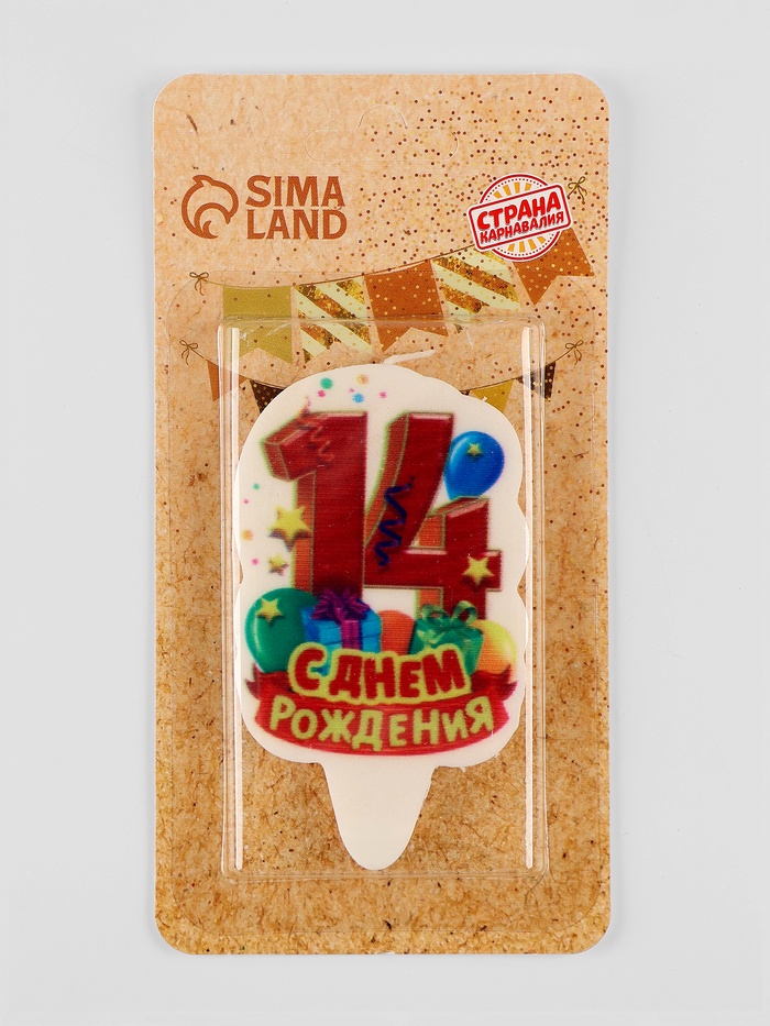 Свеча для торта цифра «С Днём Рождения» 14 красная, 6.5 см